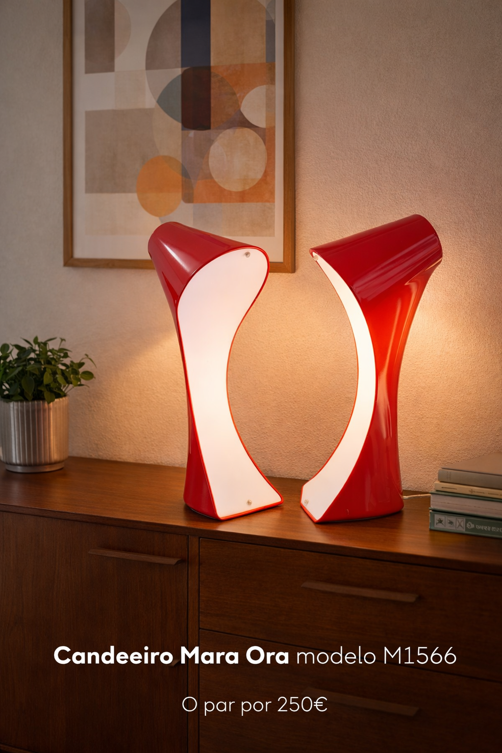 Add a bold design statement to your interior with this pair of vintage Mara Ora table lamps, model M1566. With their striking sculptural form and vibrant red finish, these lamps are true icons of 1970s modern design.