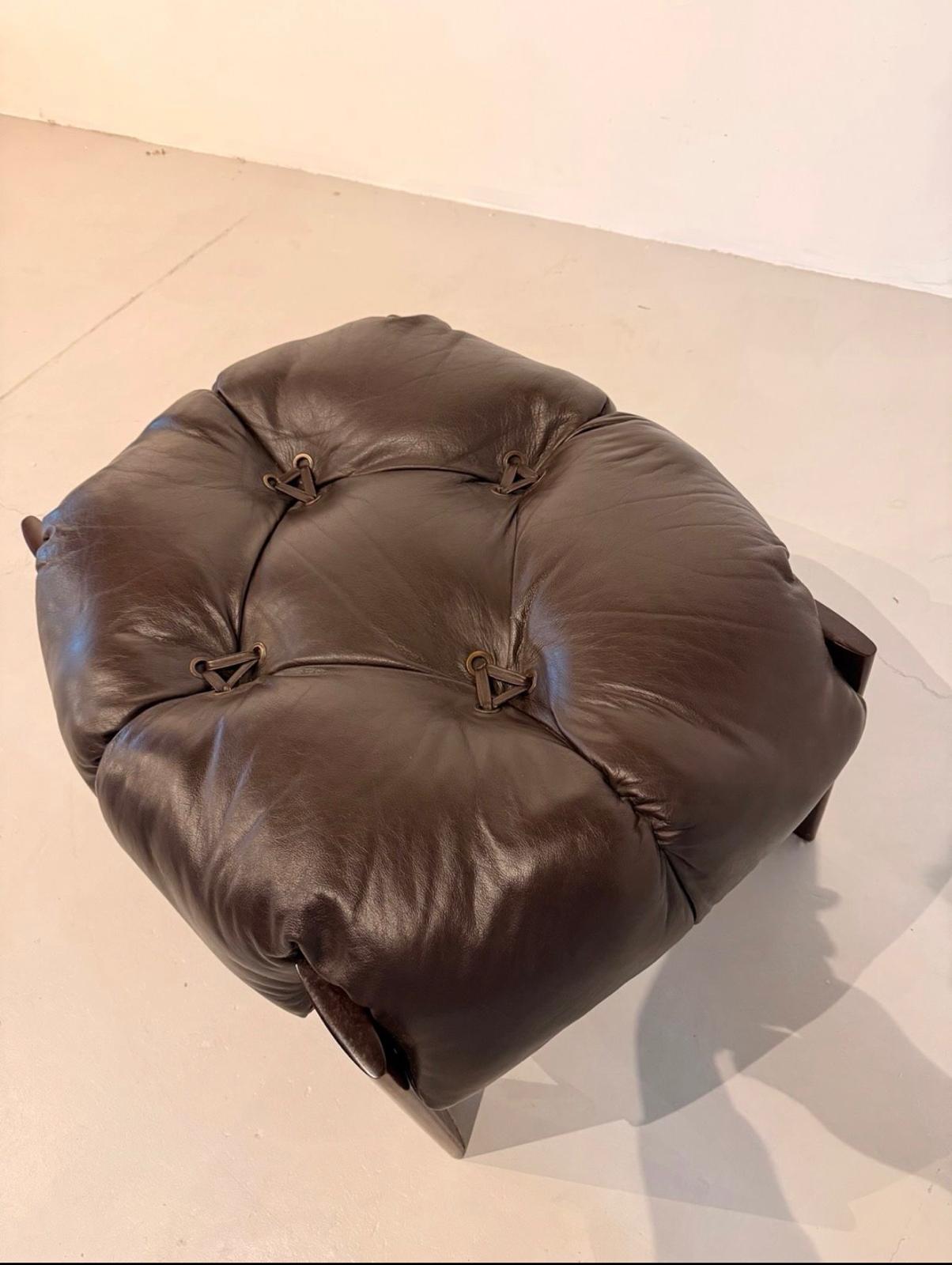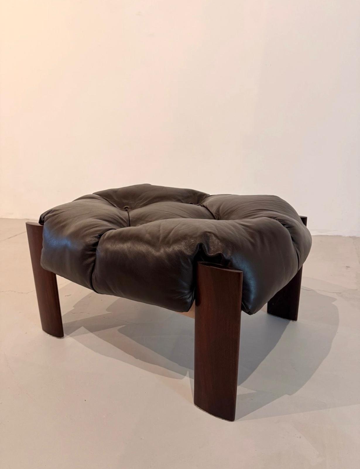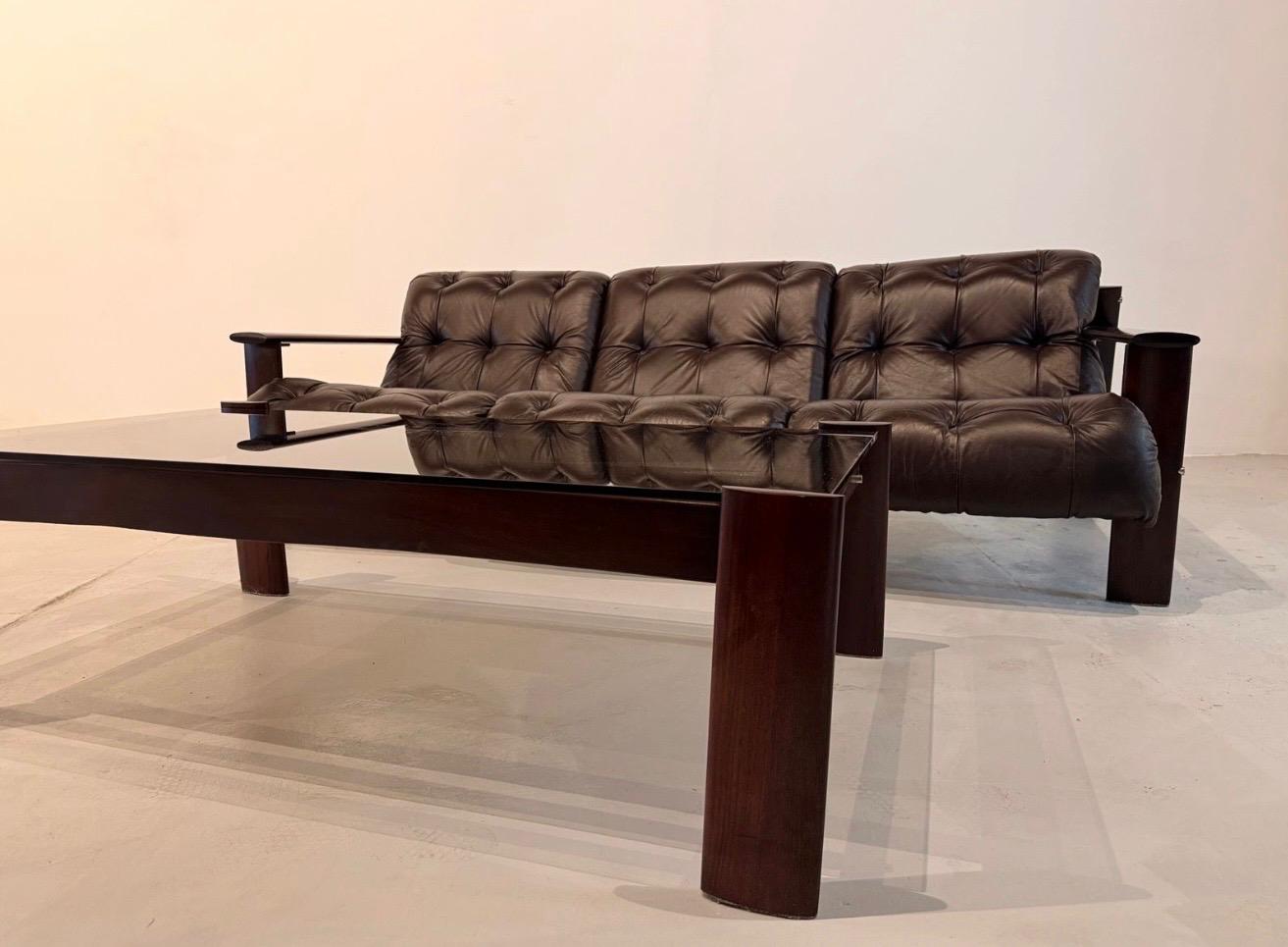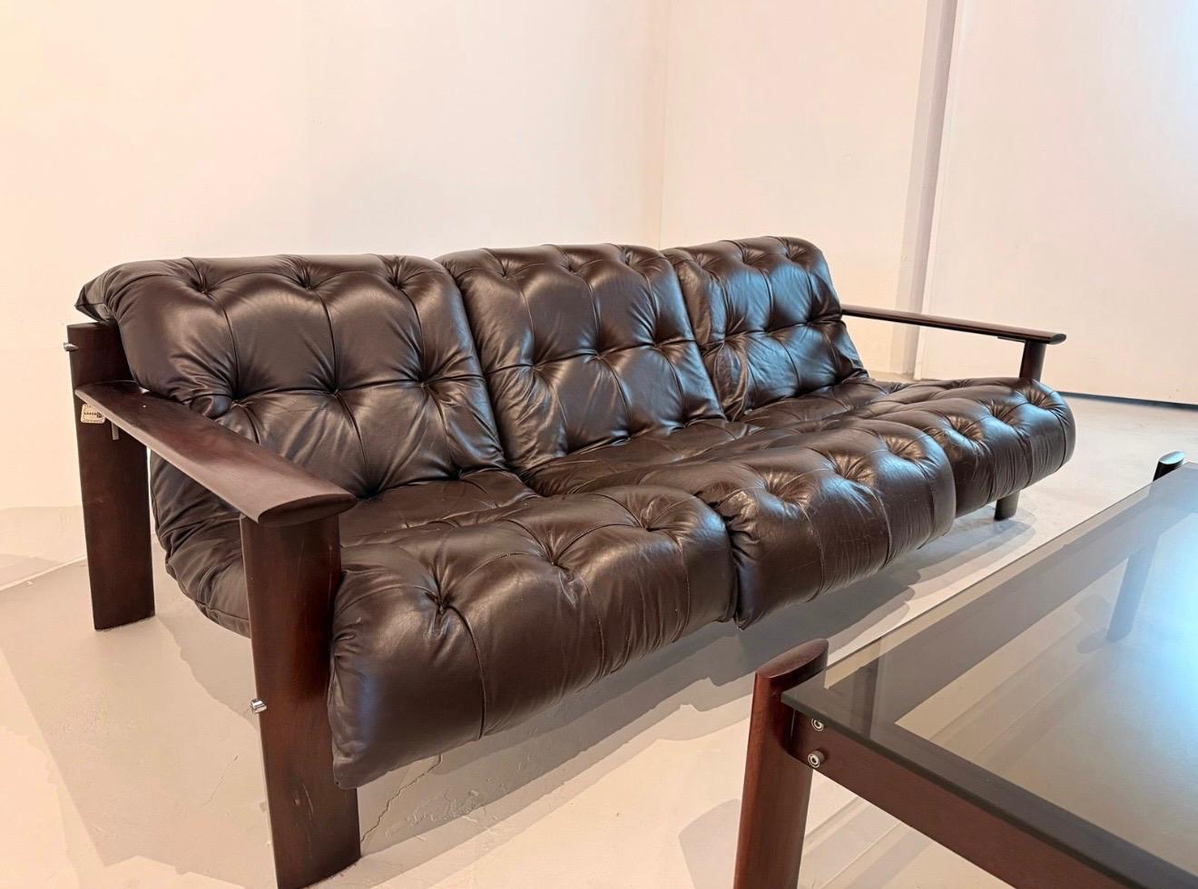 The solid jacaranda structure provides warmth, durability, and a striking contrast to the soft leather, making this set a centerpiece in any sophisticated interior. Ideal for collectors and design enthusiasts, it perfectly embodies the essence of mid-century Brazilian design.