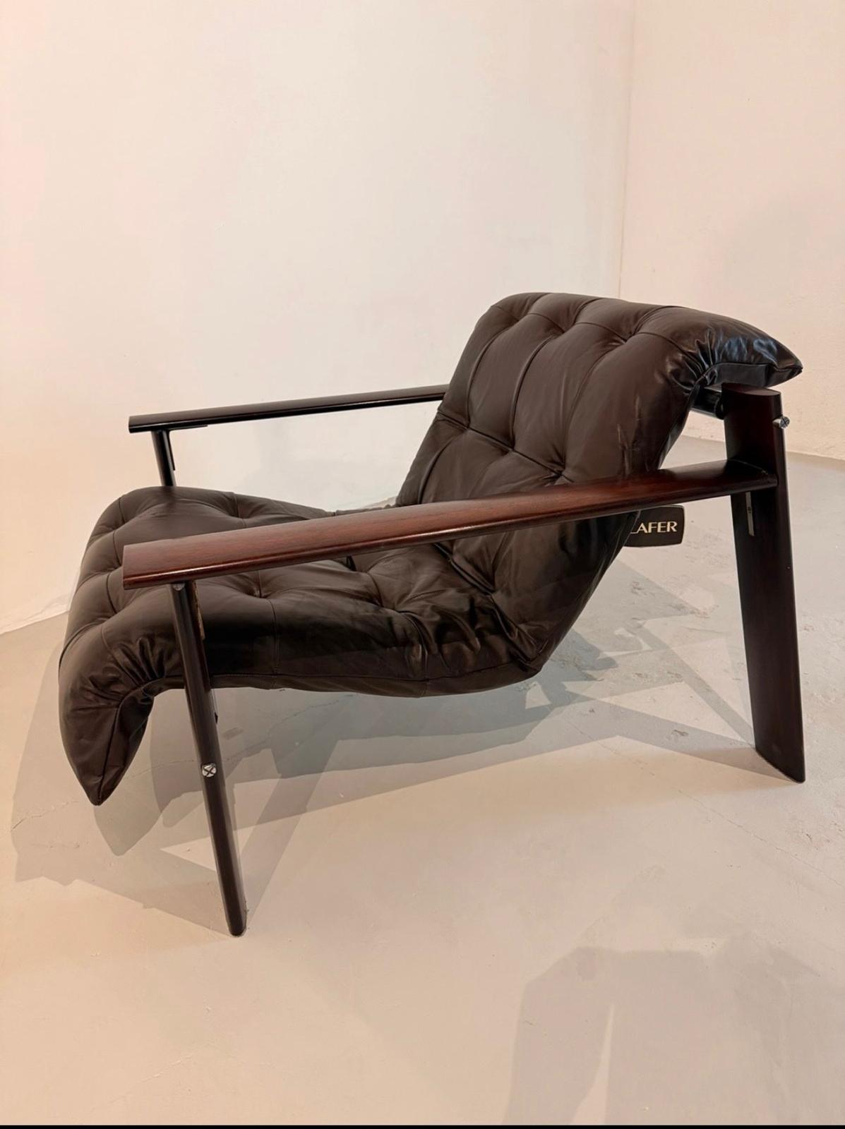 This original set, crafted in rich jacaranda wood, includes a sofa, armchair with matching ottoman, and a coordinating table. The deep-buttoned leather upholstery offers outstanding comfort while showcasing a distinctive tufted aesthetic that defines Lafer’s iconic style.